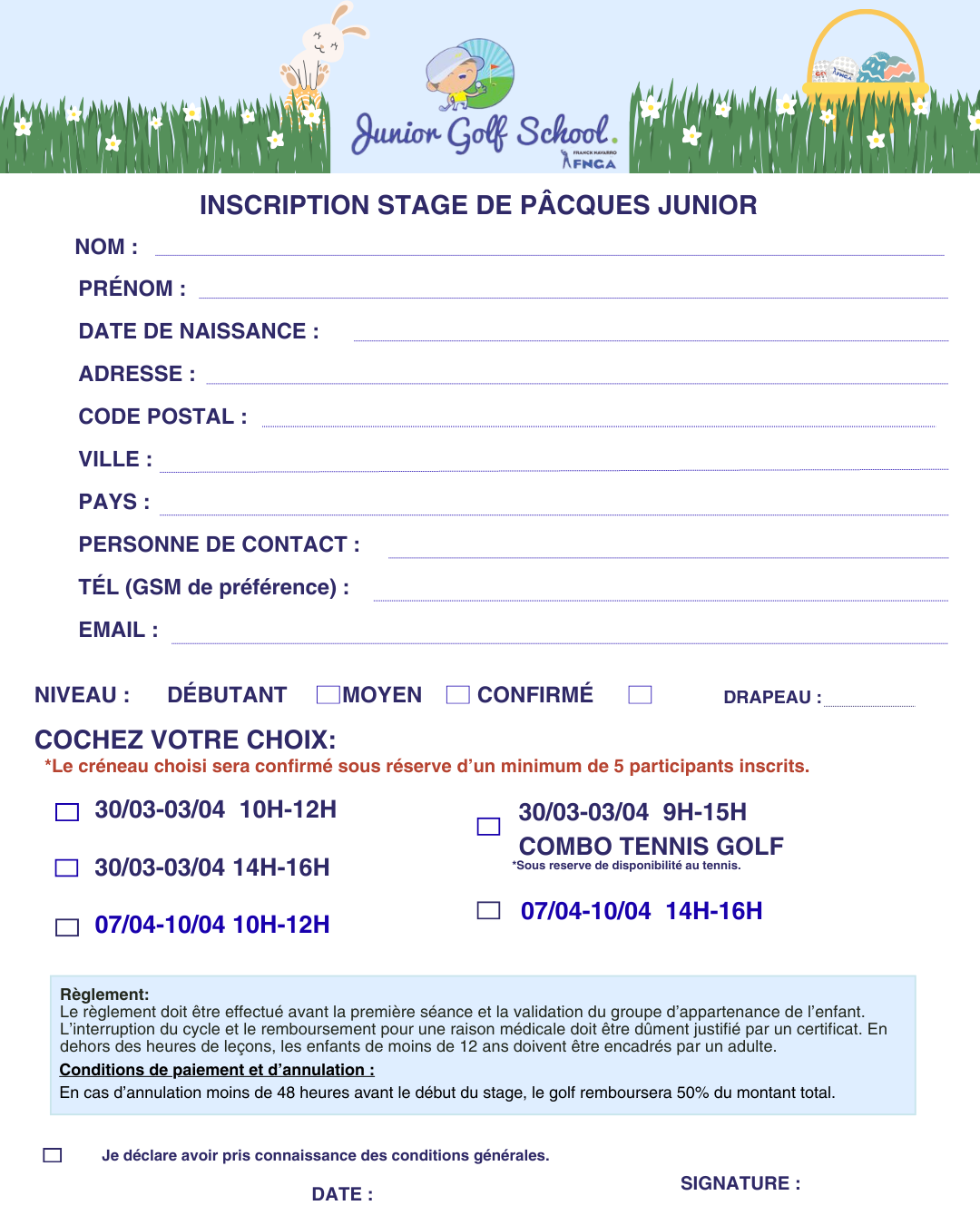 STAGES PÂQUES JUNIOR 2026 info@luxgolfcenter.com21 mai 2025Commentaires fermés sur STAGES PÂQUES JUNIOR 2026Stages Juniors
